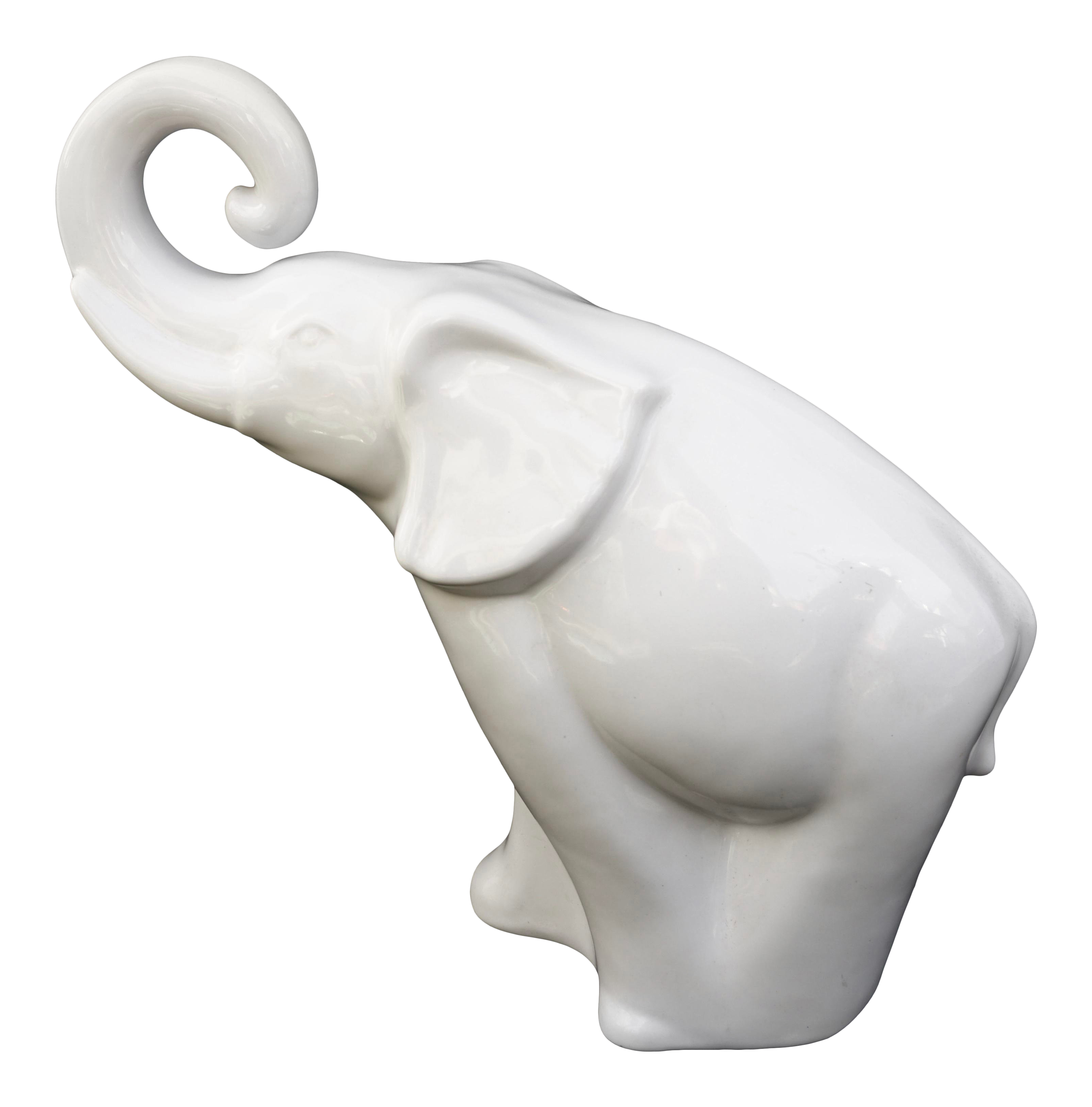 Images. White porcelain mother and baby elephant statue/figurine in high gloss finish. The regal form of an indian elephant is sculpted on the front of this porcelain garden stool.