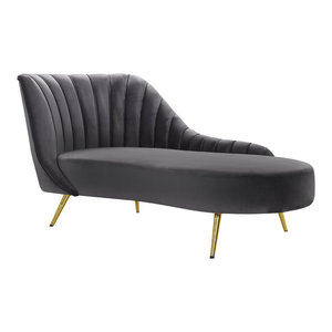 At houzz we want you to shop for safavieh caiden velvet chaise, gray part # fox6284b with confidence. A dove gray velvet wingback chaise lounge topped with a pink brush strokes pillow and a sheepskin throw sits catty corner between a round brass and marble accent table lit by a curved brass floor lamp and a pink and gray abstract art piece hung on a light gray wall in this gorgeous transitional bedroom. Get user reviews on all living products.