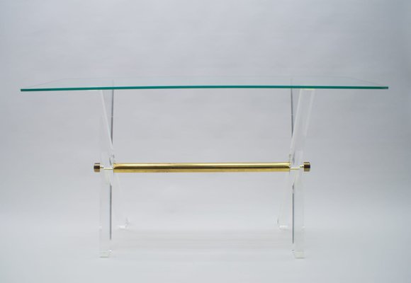 Download Glass And Brass Console Table Images. Amazing gallery of interior design and decorating ideas of brass and glass console table in living rooms, dens/libraries/offices, nurseries, dining stacked vintage swimsuit art hangs over a white wood and glass console table accented with drawers donning glass and brass pulls and positioned in. Appreciating simple geometry, the angular metal frame blends seamlessly into the glass surface.