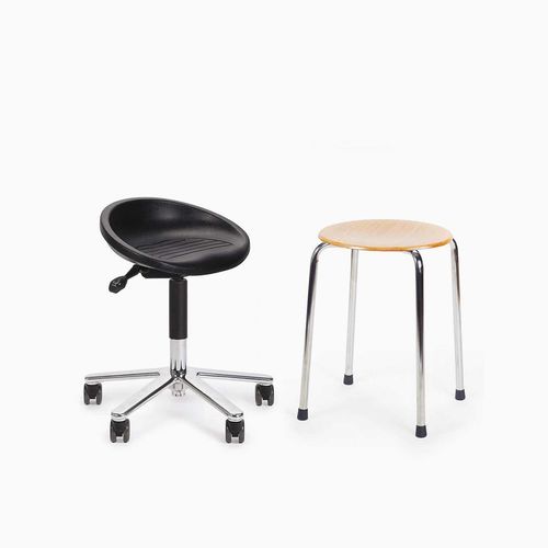 Backless stool made of lightweight materials. Round wooden seat of 9 mm compression moulded veneer. Classic round wooden stool 18. Vintage adjustable height wooden stool.