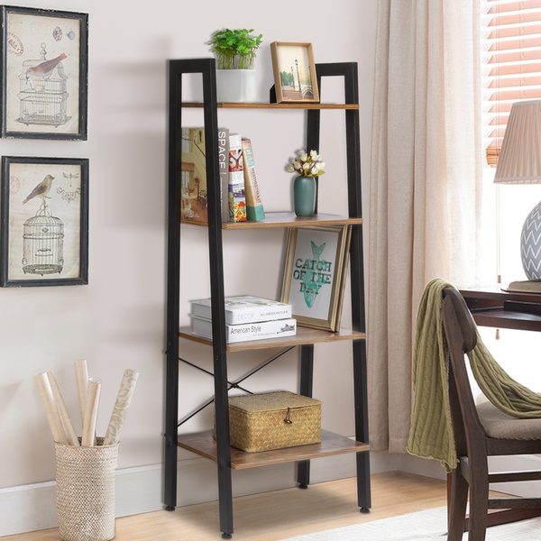 Wooden Metal 4 Tier Vintage Rustic Industrial Ladder Style Bookcase Shelf Home Garden Bookcases Ayianapatriathlon Com from www.u-buy.com.tw