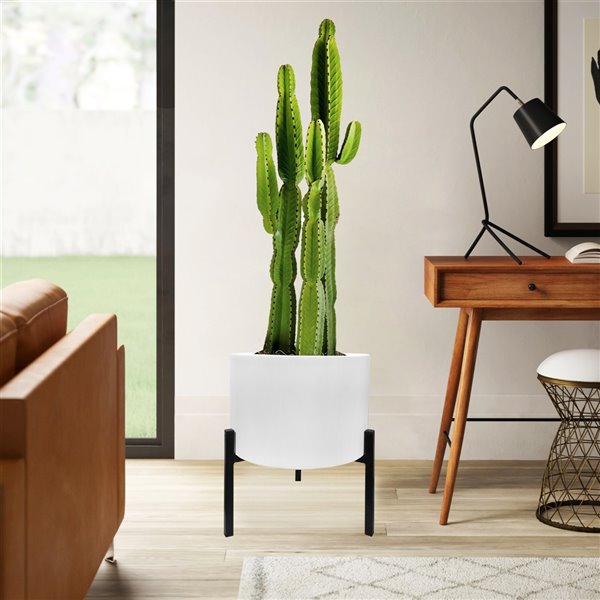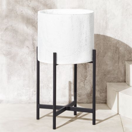 The Best White Planter With Stand JPG. Dundee elevates a cylinder with a bright white powdercoat on. Perfect for housing green plants or your favorite botanicals, it is supported on a black metal stand to give a.
