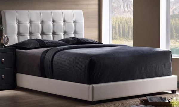 Leave it as is for a minimalist display—only draping sheer linens. Simple spindles on the open headboard and footboard create an open. Bianca transitional white faux leather upholstered king size bed.